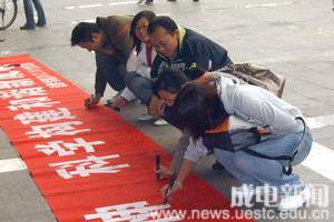 10月24日,中山学院团委组织学生前往假日广场观看“嫦娥一号”发射情况的现场转播。