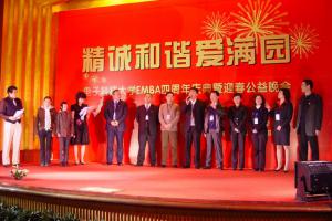 1月27日,电子科技大学EMBA同学会在锦江宾馆举办了题为“精诚和谐爱满园”的四周年庆典暨迎春公益晚会,发起成立“爱心基金。当晚通过拍卖等方式共拍卖了我校各年级EMBA学员捐...