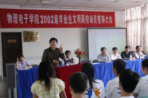 5月29日上午,在学生活动中心大厅里,先后回响着雄壮的国歌和《毕业歌》的旋律,物理电子学院2002级毕业班的149名同学庄严地举起了右手: “我是物理电子学院2002级本科毕业生,...