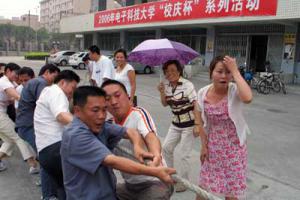 5月22日下午,迎校庆50周年体育系列活动之“校庆杯”教职工拔河比赛,第二阶段比赛结束,即进行了3-8名的争夺赛。