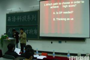 2008年12月15日晚7:30,英语科技系列之AI-Snake 对抗赛在基础教学楼A302迎来决赛,经初赛决出的六支队伍展示了他们的设计成果。经过激烈的角逐,最终由计算机学院的方灿、谢威同学...