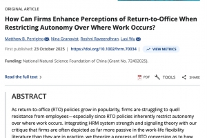 近期,电子科技大学经济与管理学院吴璐斯副教授在国际A类期刊Human Resource Management在线刊发了研究成果“How can firms enhance perceptions of Return-to-Office when restricting autonomy over where work occu...