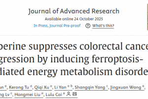 近日,医学院蔡璐璐教授团队在国际权威期刊Journal of Advanced Research(中科院1区,IF=13.0)发表了题为“Berberine suppresses colorectal cancer progression by inducing ferroptosis-mediated energy metabolism dis...