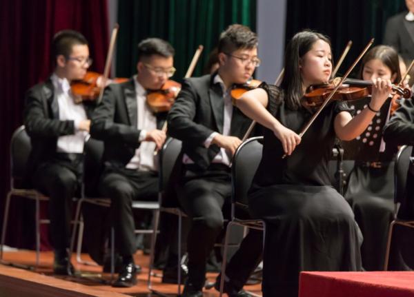 接下来,交响乐团带来改编自苏州民歌的《紫竹调》,似乎让观众置身于江南水乡。艺术中心青年教师贲立德带来二胡协奏曲《红梅随想》。宏大的气势,悲壮的曲调,塑造了女英雄江姐的光辉形象。二胡与交响乐交相辉映,乐章在壮阔中展开,在跌宕中结束。