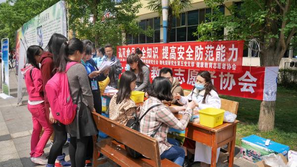 此次宣传活动还为来往的师生免费测量血压,提供相关健康咨询。