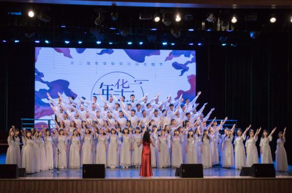 赛场上,同学们热情高涨、声音洪亮,指挥情绪饱满、富有激情。不少队伍在合唱形式中,还别出心裁地融入了舞蹈、朗诵、打击乐等多样元素,漂亮的服装也为表演增色不少。每支队伍都展示了与众不同的一面,精彩的表演赢得台下观众掌声不断。