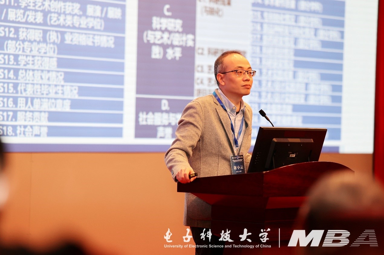 经管学院副院长肖延高教授作《电子科技大学MBA学位论文指导与评议改革》主题报告,介绍了电子科技大学MBA教育发展历程、MBA学位论文改革背景和具体的改革举措等。