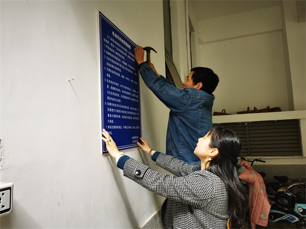 后勤保障部机关党支部、经营服务中心党支部联合开展“规范停车秩序 共建美好家园”活动,针对D组团电动自行车停放较为拥挤和混乱的区域进行集中整理,张贴电动自行车安全管理规定,积极劝导园区住户文明停放车辆,共同维护园区安全。